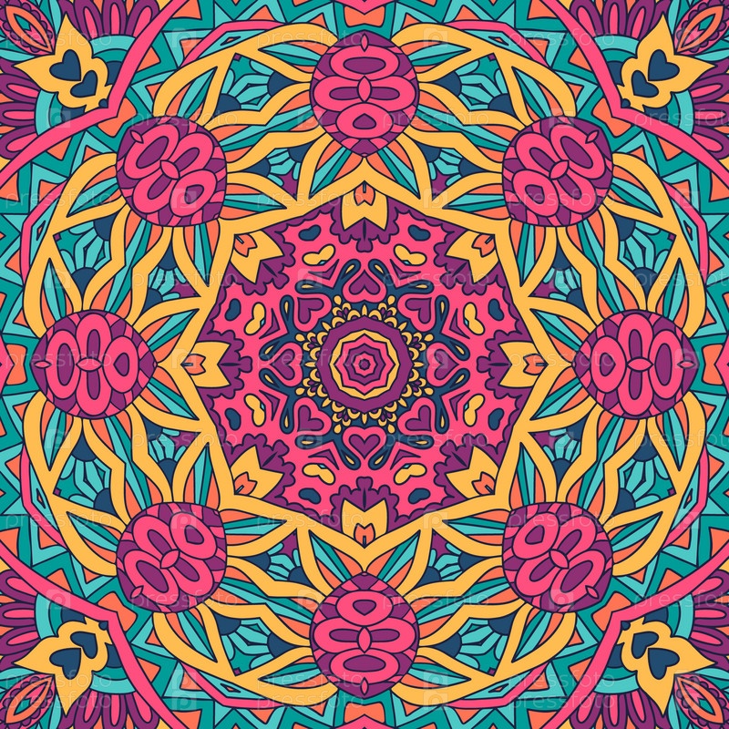 Цветочный этнический праздничный узор для ткани. Абстрактные геометрические красочные бесшовные мандалы цветок орнаментальный
