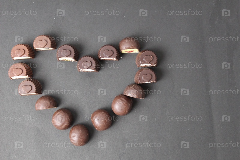 Сердце шоколада дело конфеты вид сверху символ сердце день святого валентина день святого валентина шоколад любовь