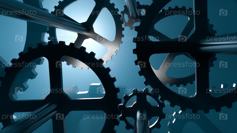 Внутри часового механизма синий прожектор на заднем плане 3D-рендеринг