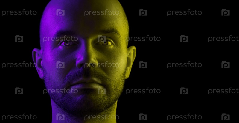Портрет молодого человека. Двухцветное освещение. Место для текста