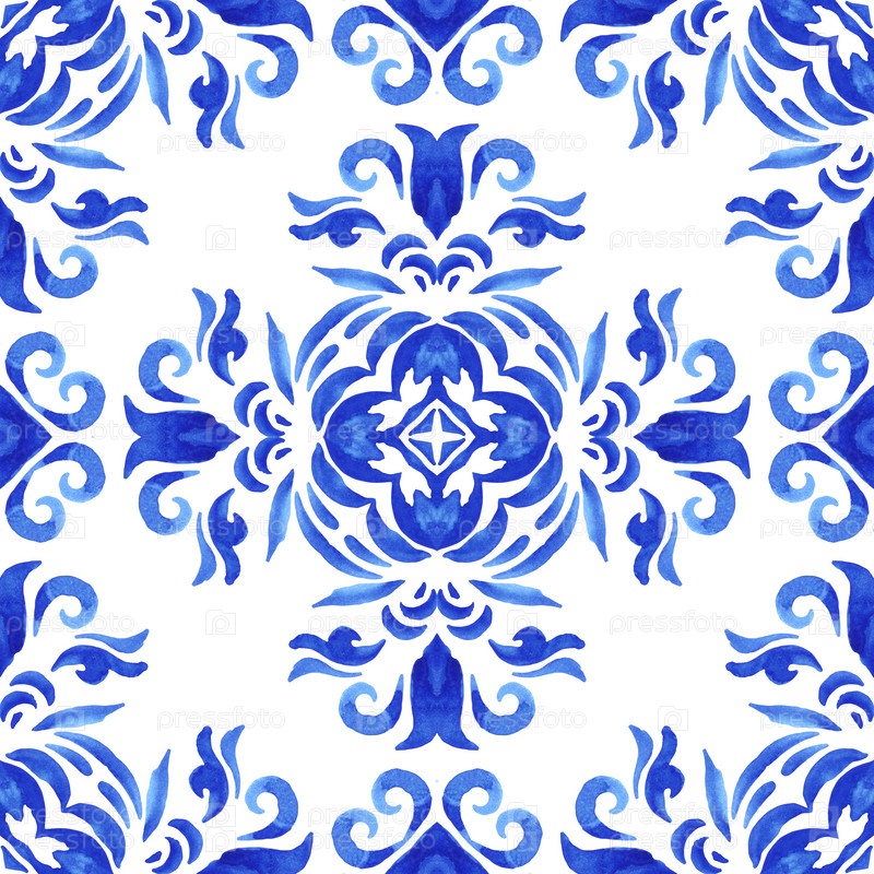 Абстрактная бесшовная декоративная акварельная дамасская арабесковая краска. Дизайн португальской керамической плитки