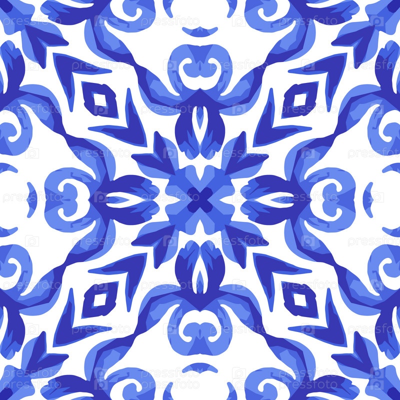 Великолепный бесшовный синий абстрактный векторный узор. Геометрический сине-белый дизайн настенной плитки в средиземноморском стиле