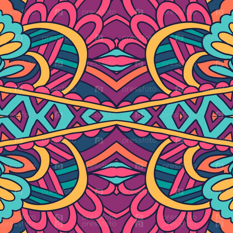 Психоделический красочный цветочный рисунок. Цвета радуги абстрактный узор. Абстрактные каракули стиль бесшовные модели декоративные. Ацтекский психоделический дизайн с крестом и ромбом