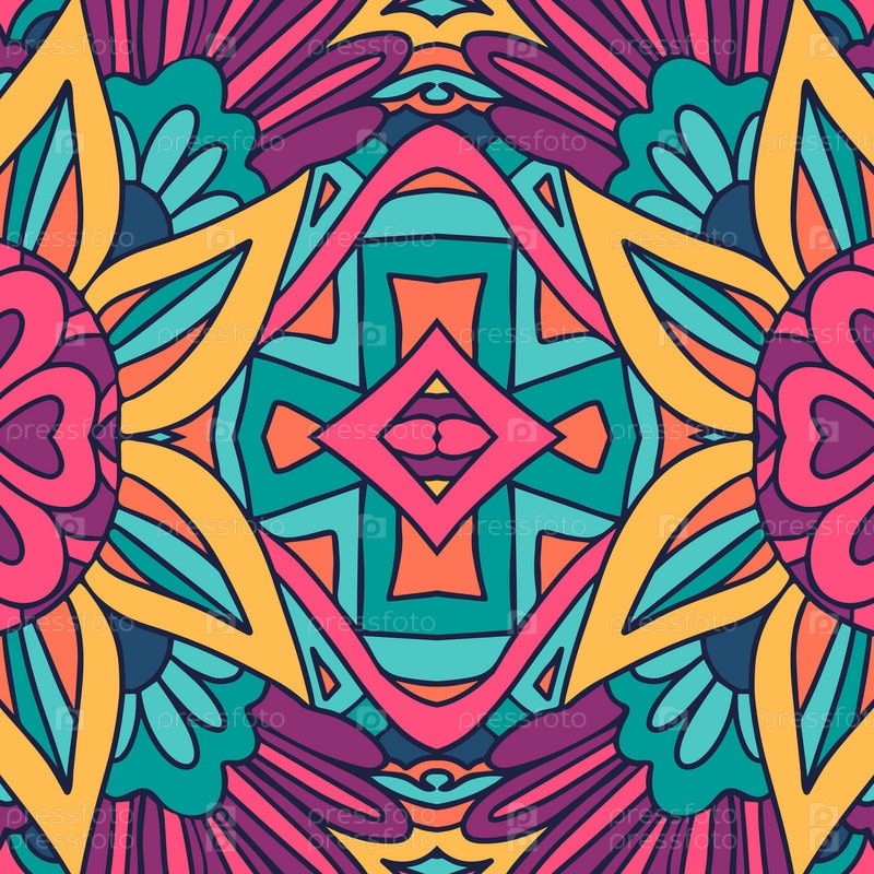 Психоделический красочный цветочный рисунок. Цвета радуги абстрактный узор