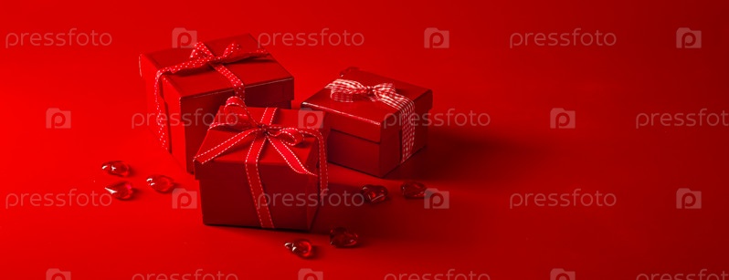 Две красные коробки с подарками и бантами, концепция Дня святого Валентина