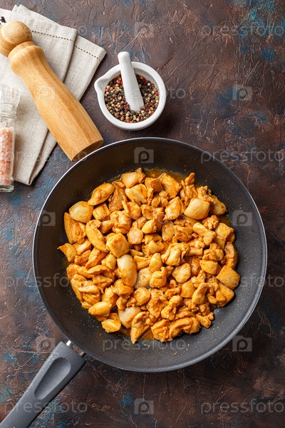 Куриное филе нарезать небольшими кусочками для обжаривания на сковороде