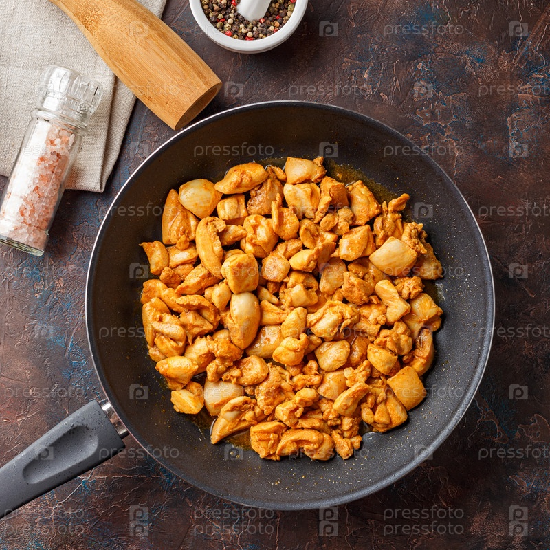 Куриное филе нарезать небольшими кусочками для обжаривания на сковороде
