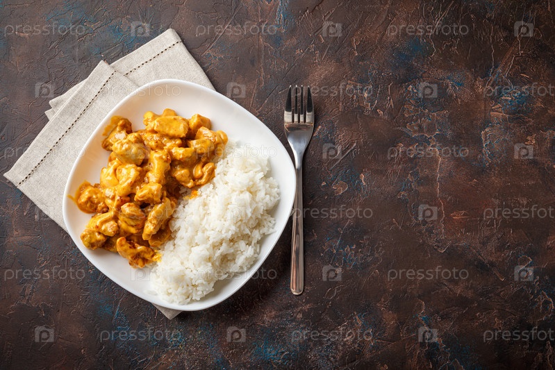Кокосовый цыпленок с карри и рисом