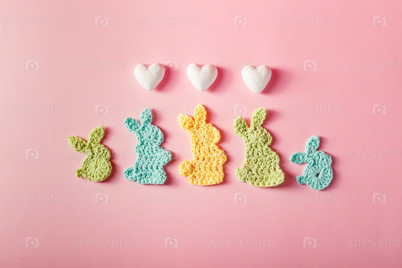 Пасхальное украшение, зайчики из разноцветной пряжи крючком. Домашний декор