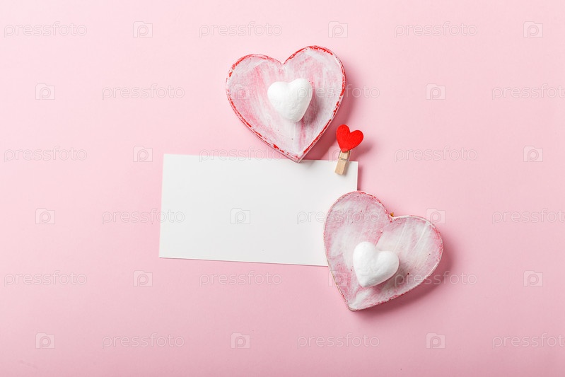 Декоративные сердца на розовом фоне. Место для текста