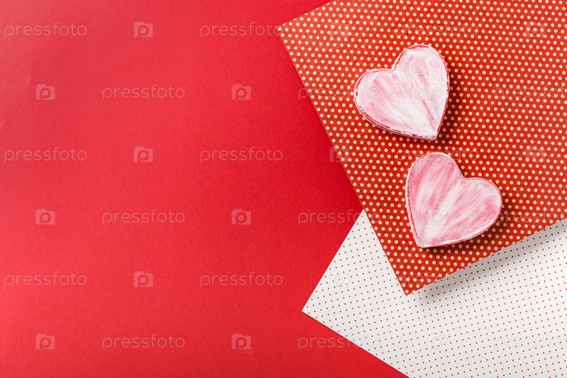 Декоративные сердца на красном фоне. Место для текста
