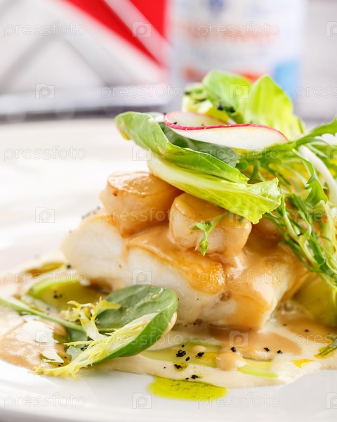 Спинка трески с гребешком и сельдереем