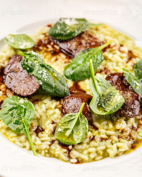 Ризотто со шпинатом и куриной печенью