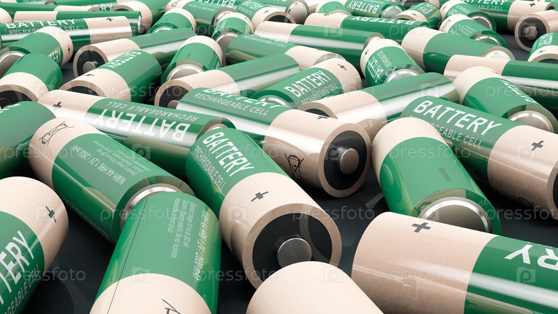 Много батареек на столе. Крупный план