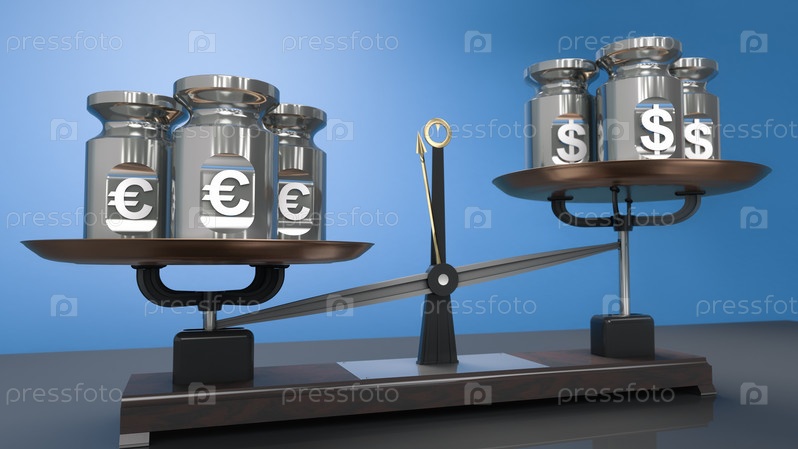 Евро против доллара. евро дорожает. гири вес. 3D-рендеринг