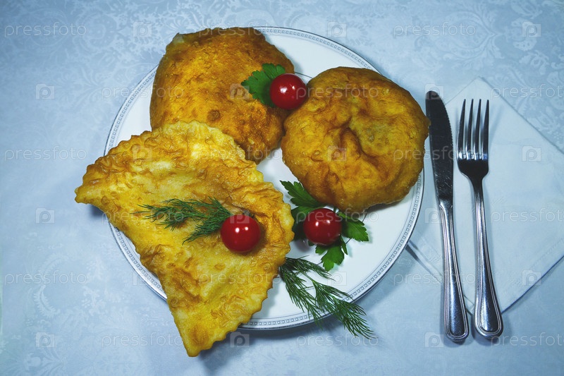 Беляши и чебурек на блюде