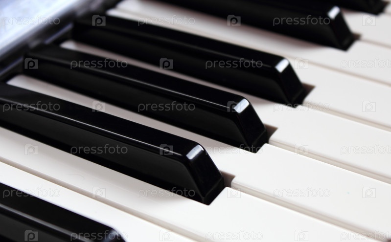 Крупный план белых и черных клавиш синтезатора
