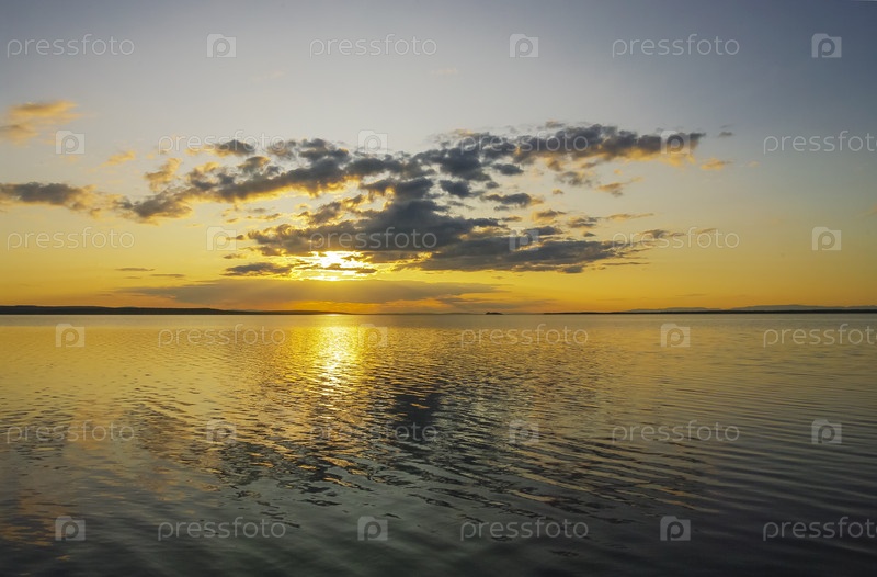 Заход солнца на Канозере. Река Умба, Кольский полуостров, Мурманская область. Август