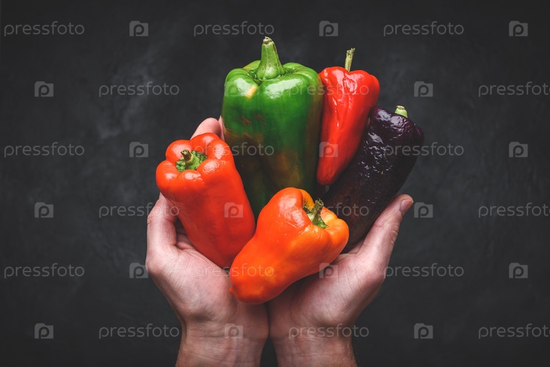 Руки с разными сладкими перцами