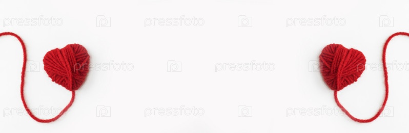 Сердце из красных шерстяных ниток, изолированных на белом фоне. Концепция Дня святого Валентина, открытка, баннер. Копировать пространство