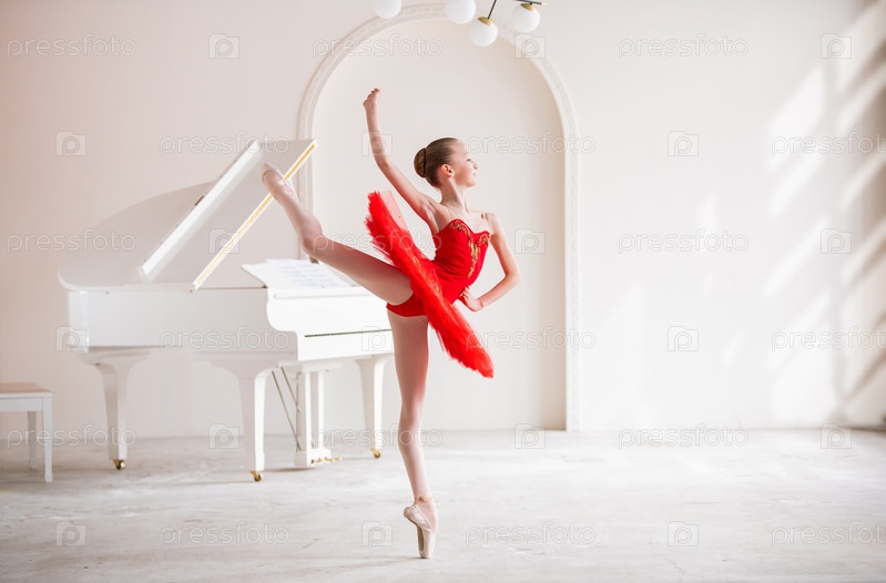 Милая маленькая девочка мечтает стать профессиональной балериной. В белой комнате, рядом с роялем, на пуантах танцует девушка в ярко-красной пачке. Ученик профессионального училища