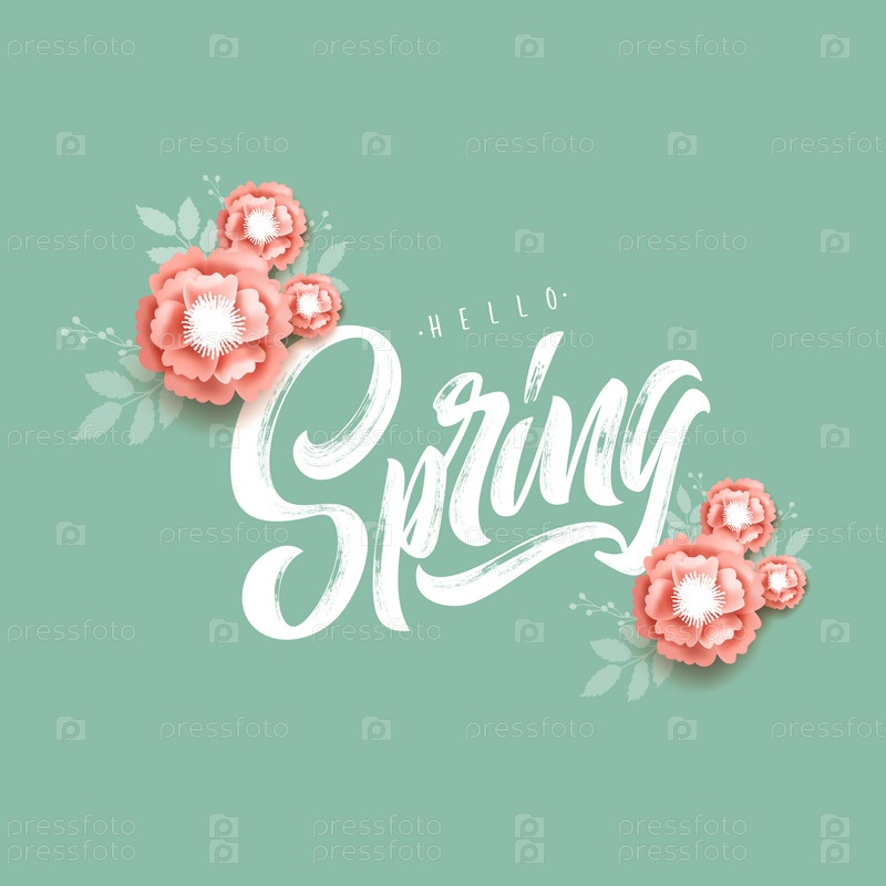 Весенняя рукописная надпись. Векторный дизайн весенней типографии для поздравительных открыток и плакатов. Празднование шаблона дизайна. Векторная иллюстрация
