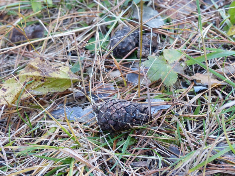 Сосновая шишка среди травы. Прогулки по осеннему лесу, бабье лето