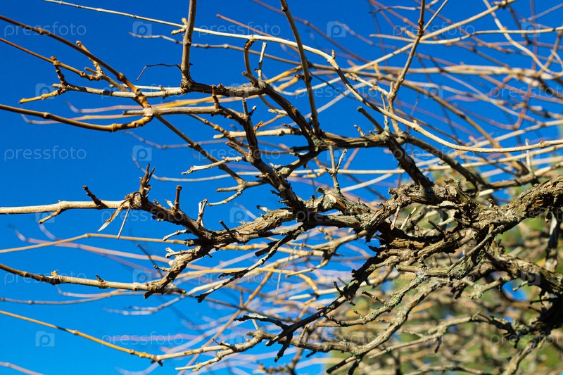 Ветка без листа в голубом небе, красивый фон рабочего стола