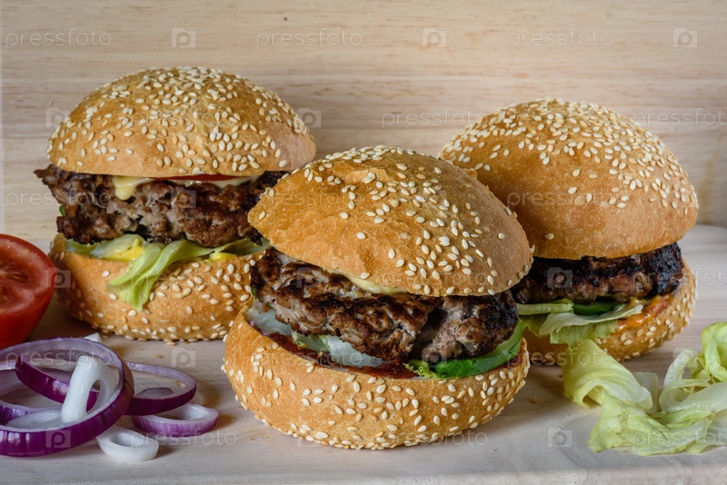 На столе лежали три свежих бургера