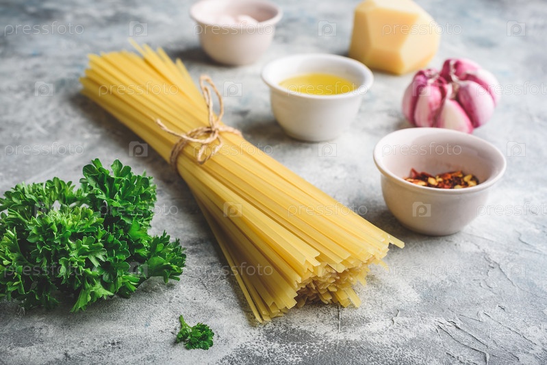 Сырье для лингвини с оливковым маслом и чесноком