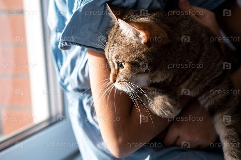 Кошка находится в руках девушки