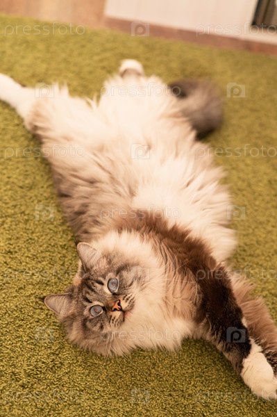 Голубоглазый пушистый кот в зеленой комнате