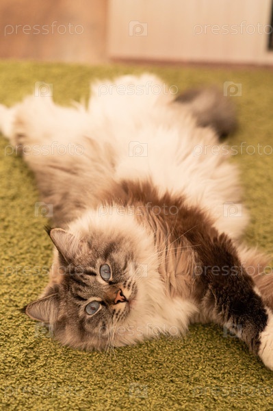 Большая кошка на полу в комнате