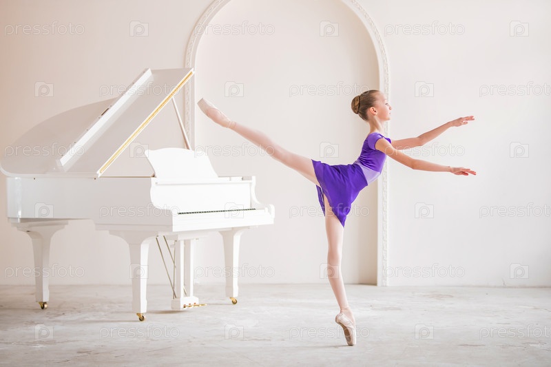 Милая маленькая девочка мечтает стать профессиональной балериной. В белой комнате, рядом с роялем, на пуантах танцует девушка в сиреневом трико. Ученик профессионального училища