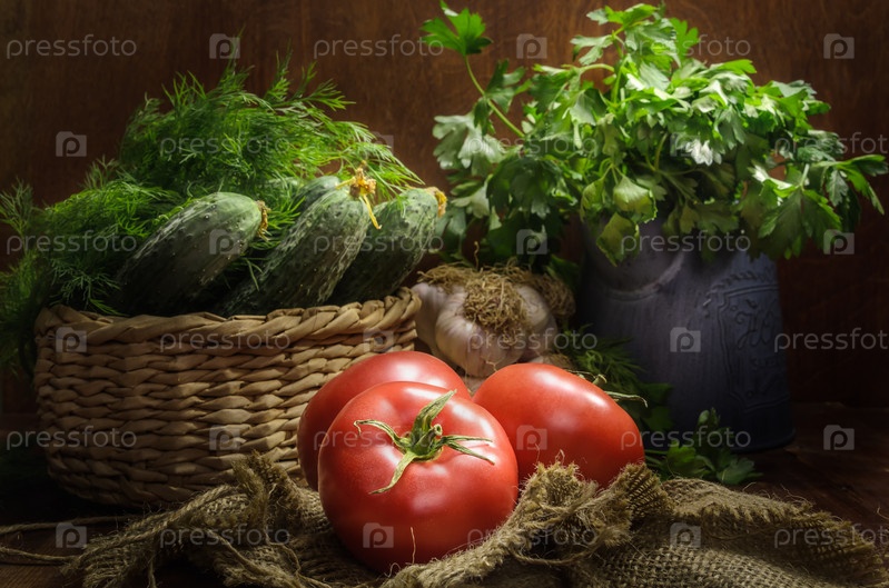 Свежие овощи на темном деревянном фоне в деревенском стиле