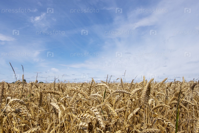 Крупный план колосьев зерновых культур в поле. Урожай, осенняя концепция. Выборочный и мягкий фокус