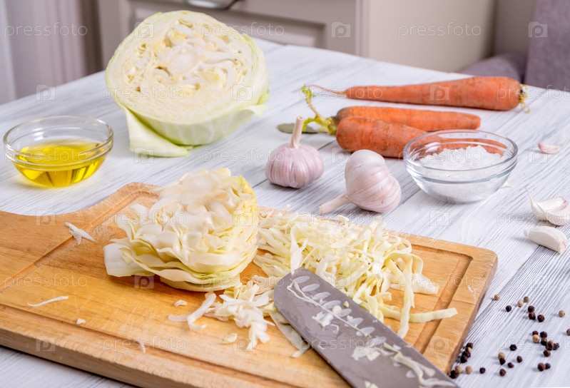 Кухонное рабочее место с процессом шинковки белокочанной капусты