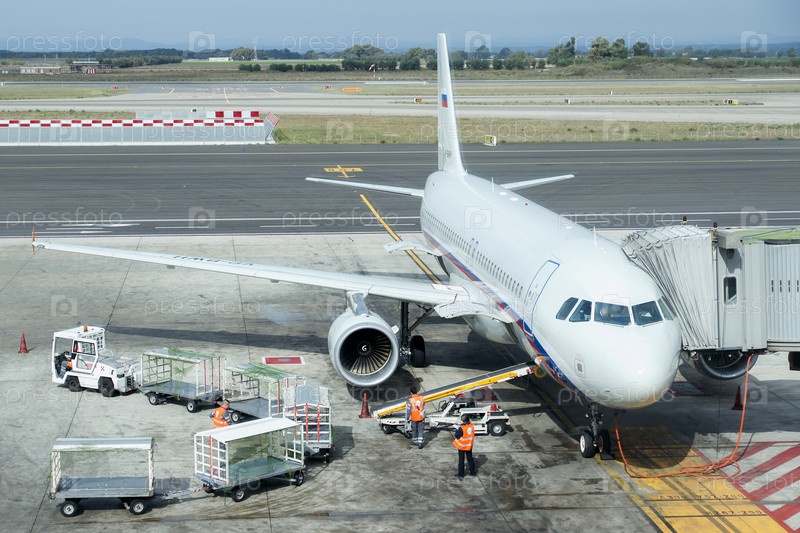 Италия. Рим. Самолет в аэропорту Фиумичино. Инфраструктура авиационной промышленности. Италия. Рим. Самолёт в аэропорту Фьюмичино. Инфраструктура авиационной отрасли