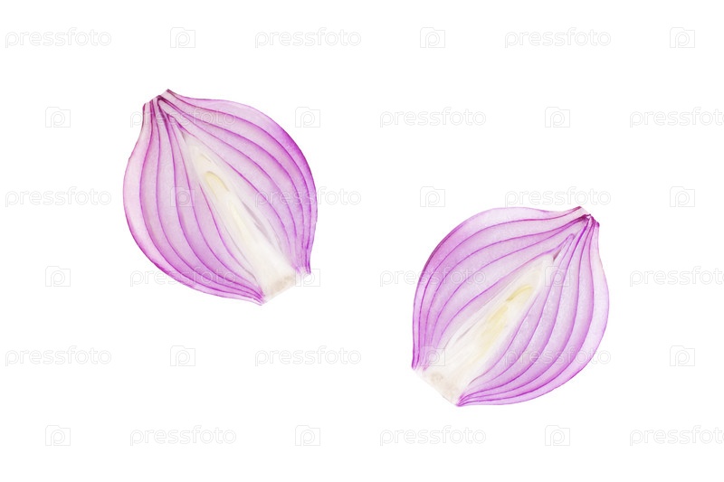 Красный лук разрезать пополам, изолированные на белом фоне. Свежие овощи