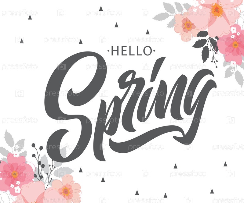 Весенняя рукописная надпись. Векторный дизайн весенней типографии для поздравительных открыток и плакатов. Празднование шаблона дизайна. Векторная иллюстрация