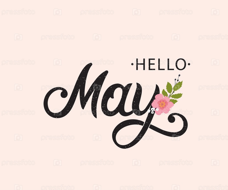 Hello May типография векторный дизайн для поздравительных открыток и плакатов. Текст рукописного надписи выделен на розовом фоне. Празднование шаблона дизайна. Векторная иллюстрация