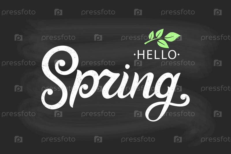 Дизайн вектора типографии Hello Spring для поздравительных открыток и плакатов. Текст рукописного надписи выделен на розовом фоне. Празднование шаблона дизайна. Векторная иллюстрация