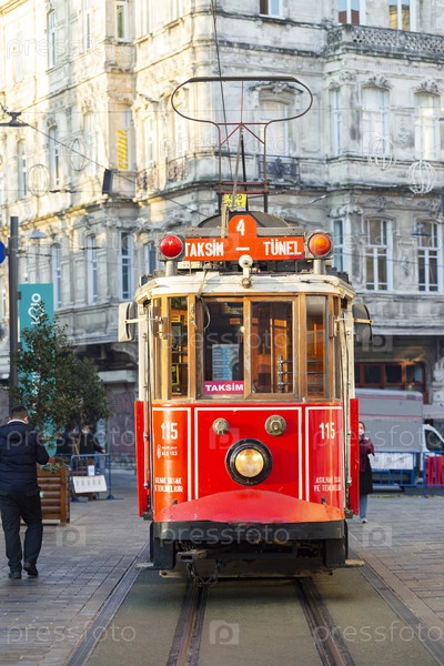 Турция. Стамбул. Старинный трамвай. Трамвайная туристическая линия. Турция. Стамбул. Старый трамвай. Трамвайная туристская линия