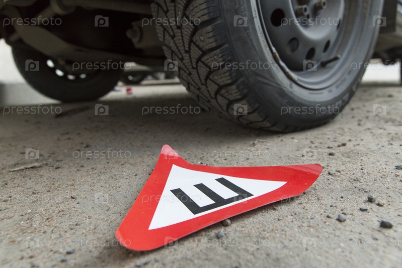 Россия. Санкт-Петербург. Обозначение автомобиля с шипованными зимними покрышками. Россия. Санкт-Петербург. Определение автомобиля с шипованными зимними шинами