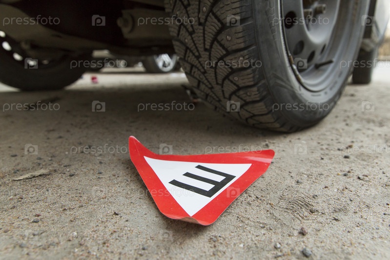 Россия. Санкт-Петербург. Обозначение автомобиля с шипованными зимними покрышками. Россия. Санкт-Петербург. Определение автомобиля с шипованными зимними шинами