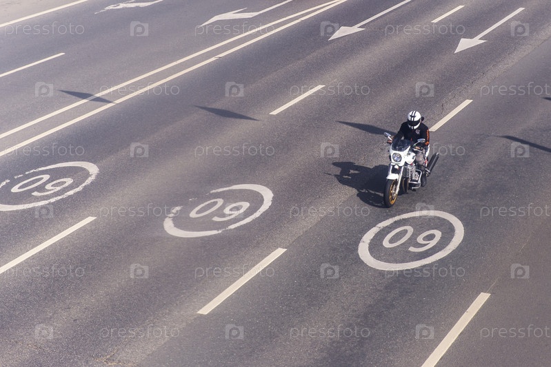 Россия. Москва, Зеленоград. Ограничение скорости. Знак ограничения скорости на скоростной трассе. Мотоцикл. Предел скорости. Знак ограничения скорости на шоссе. Мотоцикл