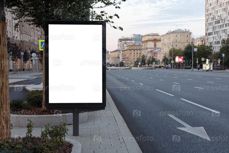 Вертикальная реклама на билбордах в городе. Раннее утро без никого. Макет
