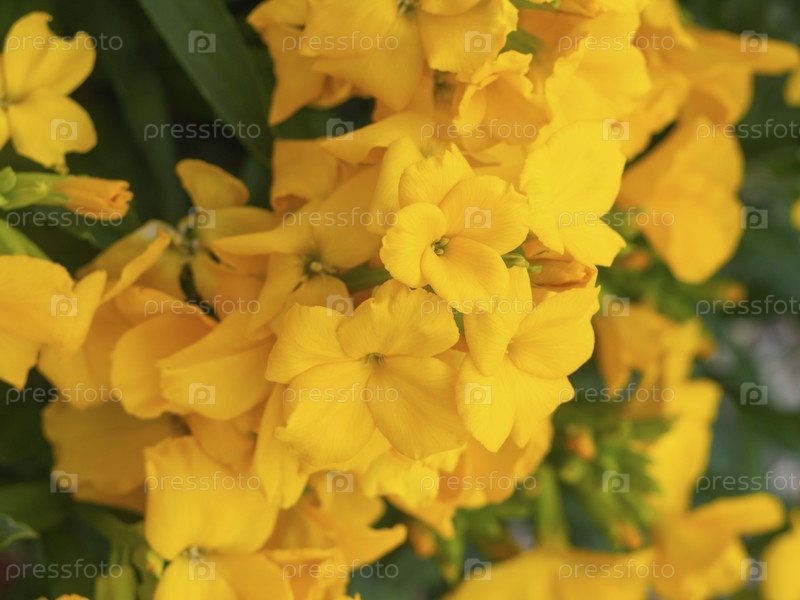 Крупный план несфокусированных желтых цветов на зеленом фоне