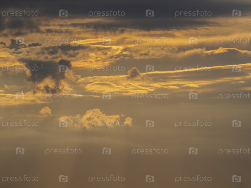 Красивое разноцветное закатное небо с солнечными лучами, пробивающимися сквозь облака. Естественный фон неба