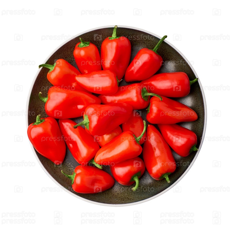 Тарелка с красным перцем на белом фоне